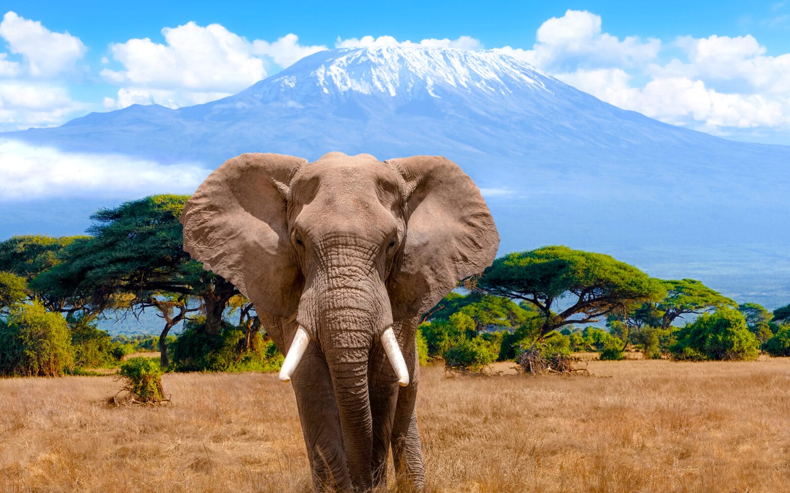 Berühmt für seine großen Elefantenherden vor der Kulisse des Kilimandscharo, Afrikas höchstem Berg. Der Park bietet spektakuläre Ausblicke und eine Vielzahl von Wildtieren.