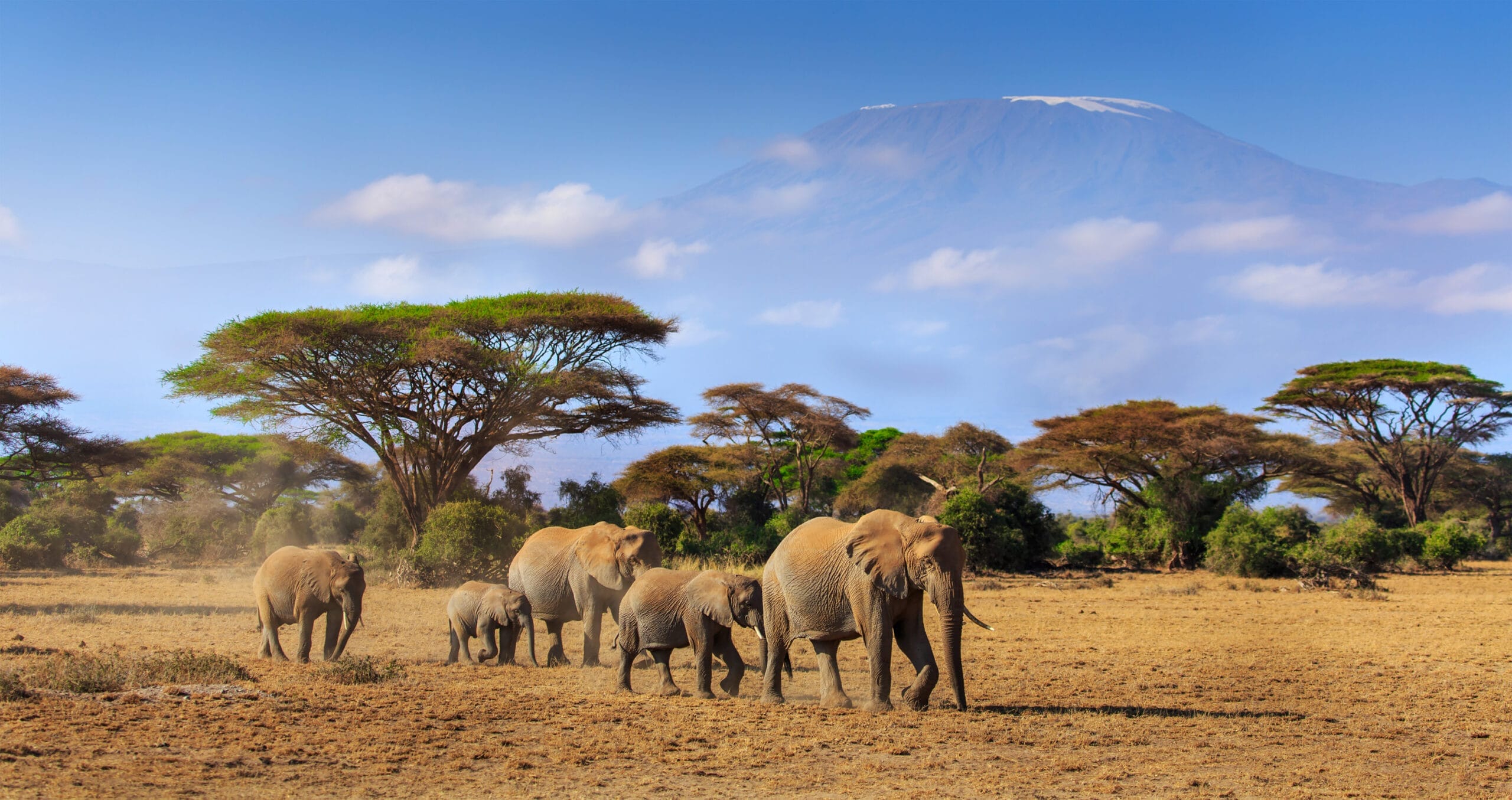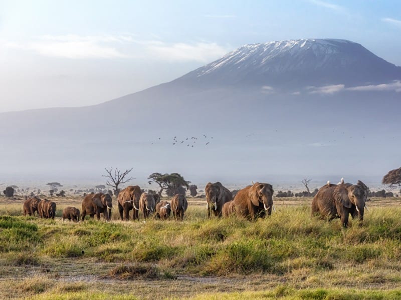 Erholt und entspannt geht es heute in Richtung Amboseli. Die Fahrt führt Sie vorbei an den Ngong-Bergen in Richtung Süden, fast bis zur tansanischen Grenze. Hier liegt der Amboseli-Nationalpark, der auch den Beinamen "Heimat der Elefanten" trägt. Wenn das Wetter mitspielt, zeigt sich die vielleicht gewaltigste Naturkulisse Afrikas: Der imposante Kilimanjaro erhebt sich aus der Savanne, wo riesige Elefantenherden zwischen den Akazienbäumen umherstreifen.