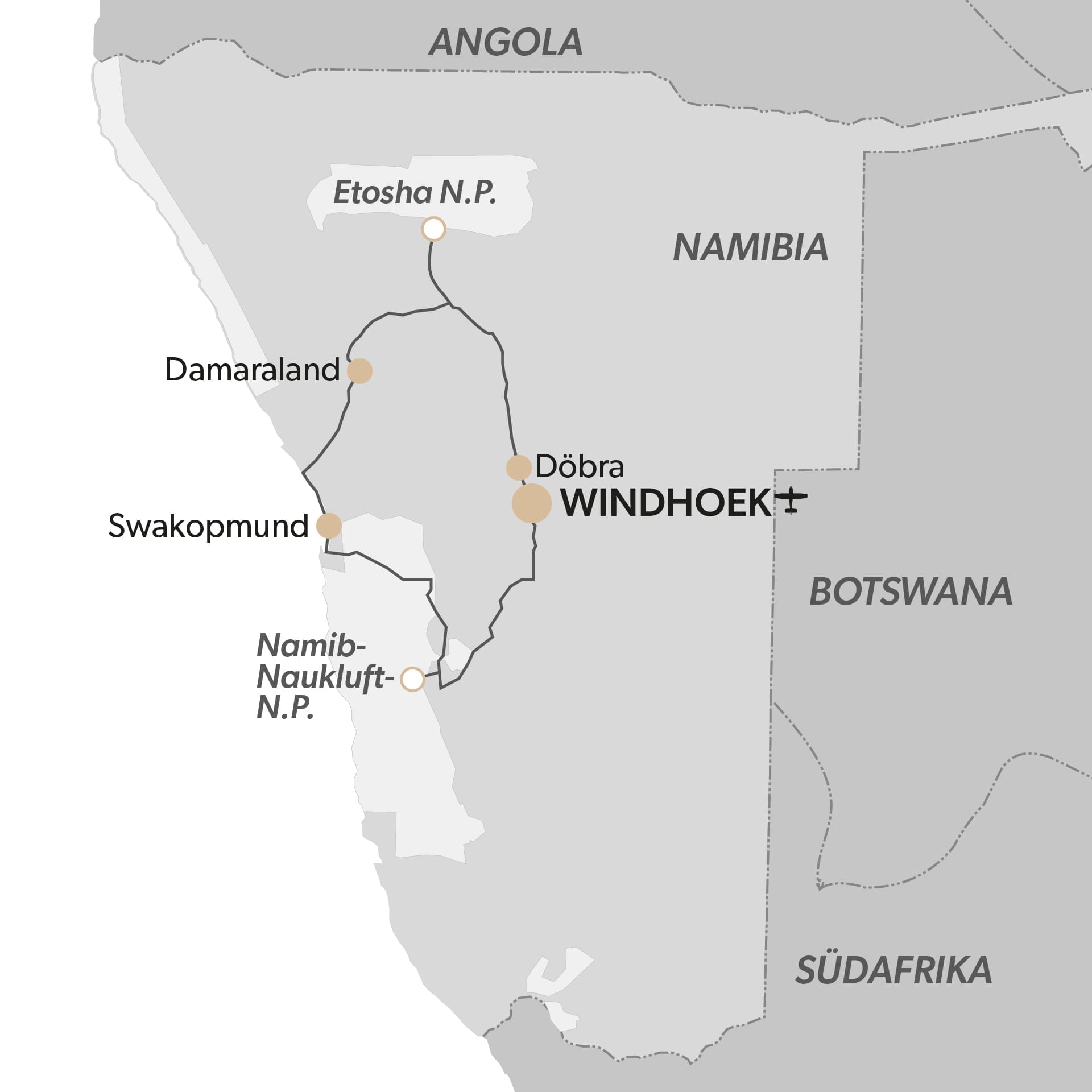 Windhoek (WDH) ist die letzte Station Ihrer Reise.