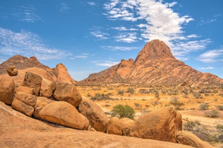 Heute erreichen Sie auf Ihrem Weg an die Atlantikküste das Matterhorn Namibias, wo Sie eine geführte Wanderung mit einem lokalen Guide zum "Bushman Paradies" unternehmen. Dabei entdecken Sie in den Felsen versteckten Zeichnungen der San.