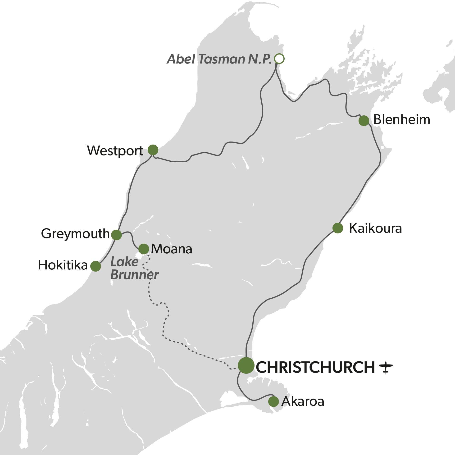 • Transfer von Greymouth nach Moana