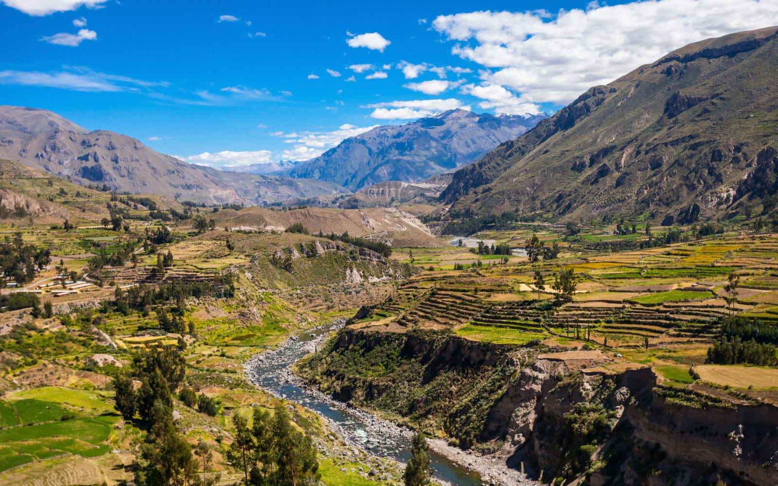 Der Colca Canyon ist doppelt so tief wie der Grand Canyon und bekannt für seine majestätischen Andenkondore. Der Canyon liegt nordwestlich von Arequipa und erreicht Tiefen von über 3.000 Metern. Die Landschaft ist geprägt von Terrassenfeldern, schroffen Felsen und traditionellen Dörfern. Besonders beliebt ist der Aussichtspunkt „Cruz del Cóndor“, wo man die riesigen Kondore mit etwas Glück im Flug beobachten kann. Wanderungen durch den Canyon bieten spektakuläre Ausblicke und Einblicke in das Leben der lokalen Bevölkerung.