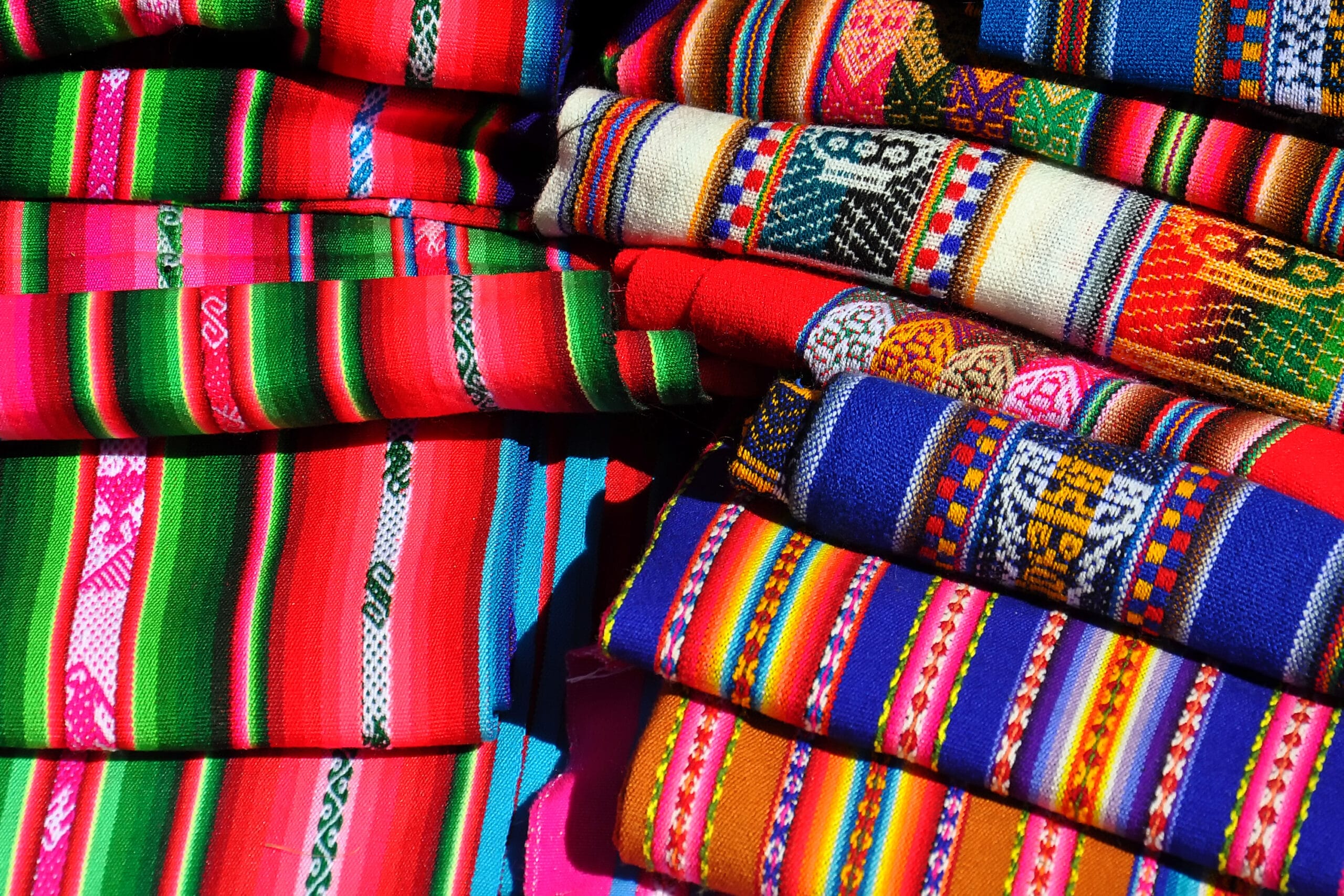 Wollsachen und Teppiche aus Alpaca- und Lamawolle, Masken, handgewobene Ponchos und Nachbildungen alter Inka-Schmuckstücke, Artikel aus Silber, Gold, Leder und Holz.