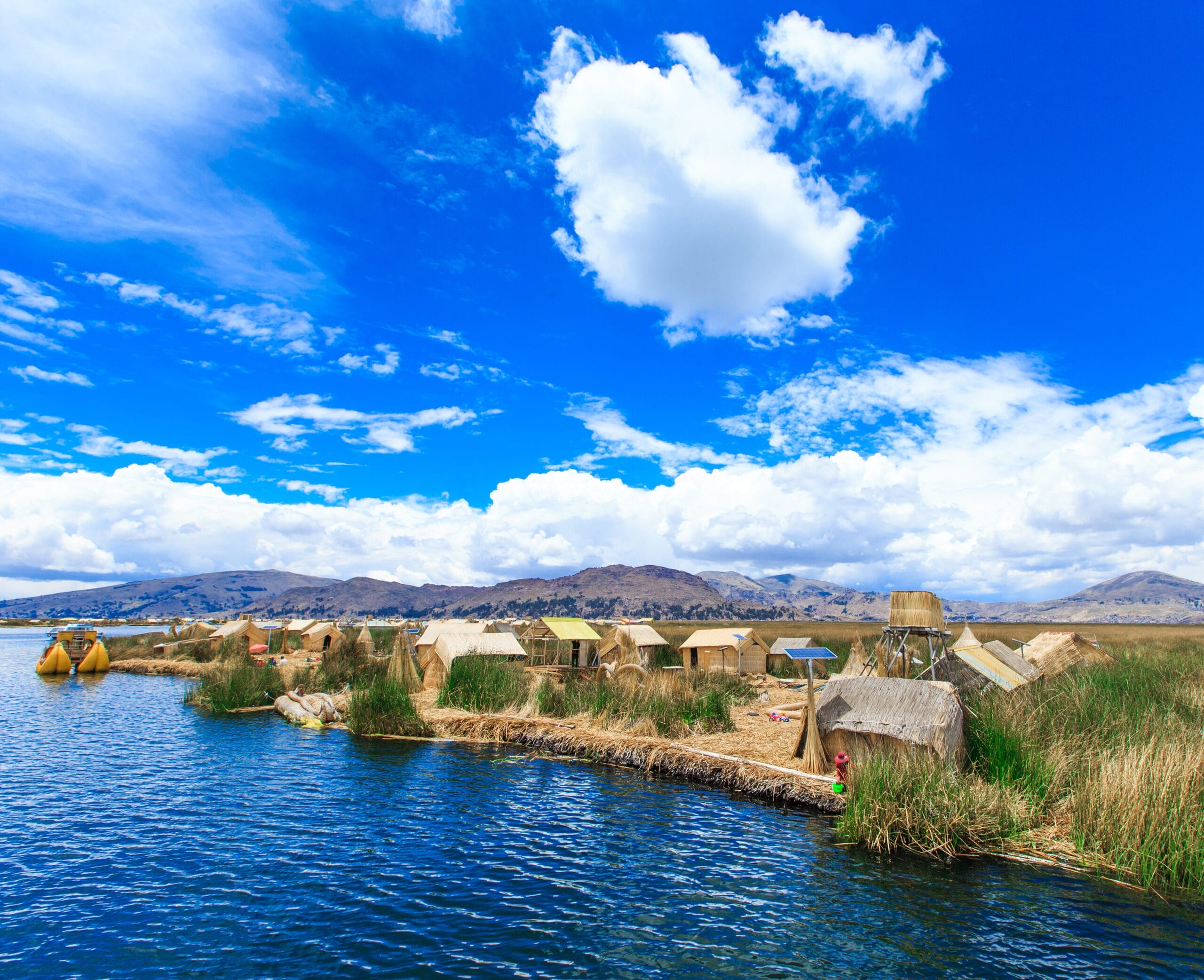 Heute unternehmen Sie eine Bootsfahrt zu den Uros-Inseln – ein einzigartiges Reiseziel auf dem Titicacasee in Peru. Die Uros gelten als die ursprünglichen Bewohner dieser Region und leben auf rund 40 schwimmenden Inseln aus Schilfrohr, die sie selbst erbaut haben. Diese indigene Gemeinschaft hat ihre Traditionen und Lebensweise bis heute bewahrt. Besucher können auf den Inseln handgefertigtes Kunsthandwerk erwerben und einen authentischen Einblick in das Leben der Uros gewinnen.