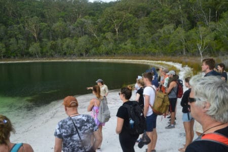 Wo wir dann auch wieder beim Thema Sandinsel wären! Die gesamte Insel besteht praktisch nur aus Sand. Trotzdem herrscht hier eine sehr üppige Vegetation mit einer sehr großen Artenvielfalt in der Pflanzen- als auch Tierwelt. Zudem gibt es unzählige tolle Seen. Aber auch hierzu später mehr! Dadurch, dass der Ausflug auf Fraser also eine durchweg sandige Angelegenheit ist, dürfen auch nur Allrad Fahrzeuge die Insel befahren. Zwar ist es möglich, die Insel auf eigene Faust mit dem eigenen oder gemieteten 4WD zu erkunden, durch die unebenen Wege ist das aber gar kein so leichtes Unterfangen. Die Cool Dingo Tour ist daher die ideale Möglichkeit, das Fahrerlebnis hautnah mit zu erleben, ohne selbst Schweißperlen auf der Stirn zu haben. Obendrauf gibt’s zudem noch viele tolle Auskünfte zur Flora und Fauna von Fraser.