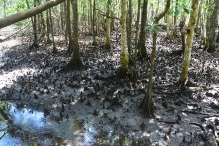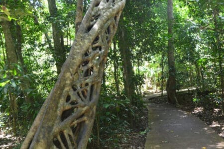 Im Nationalpark selbst gibt es einige kürzere Boardwalks, bei denen man in die Tiefen des tropischen Regenwaldes eintaucht. Dank der kleinen Hinweisschilder lernt man viel über Flora und Fauna. Und nebenbei hat man auch noch fantastische Aussichten auf die Küste. Ganz vom Regenwald eingenommen, haben wir es Tarzan gleichgetan und uns von Süden nach Norden „entlang gehangelt“. Angefangen mit dem Jindalba Walk, über den Marrdjabis hin zum Dubujii Walk und zu guter Letzt dem Kulki Walk, versprüht jeder einzelne Wanderweg seinen ganz eigenen Charme. Was alle miteinander verbindet sind jedoch die Mangroven-Wälder, die sich entlang der gesamten Küste schlängeln. Bäume, die im Wasser ihren natürlichen Lebensraum haben, sind wirklich faszinierend anzuschauen.
