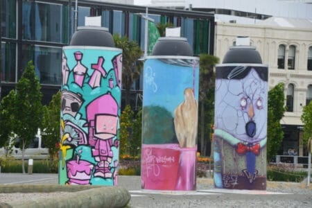 Besonders angetan hat es uns die Little High Street. Nach den Erdbeben wurden hier mehrere Schiffscontainer installiert. Diese beinhalteten neben Gastronomie auch Shops, um den Menschen einen Weg zurück zur Normalität zu ebnen. Was zuerst nur für einen kurzen Zeitraum und zur Wiederherstellung des öffentlichen Lebens gedacht war, hat sich mit der Zeit zu einer Art Street Food Straße entwickelt. Hier kann man gemütlich sitzen und lecker essen, eine absolute Empfehlung! Einige der Container sind stylisch ins Stadtbild integriert noch immer im Einsatz. Ebenso haben sich an vielen Ecken Straßenkünstler bemüht, die Stadt mithilfe von coolen Graffitis wieder bunt aufleben zu lassen.