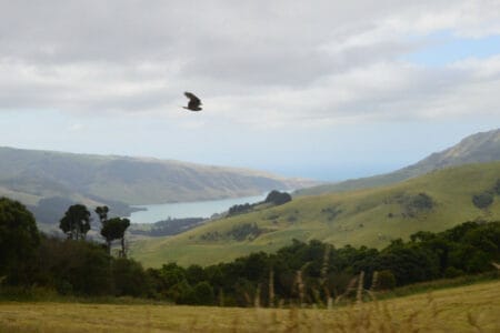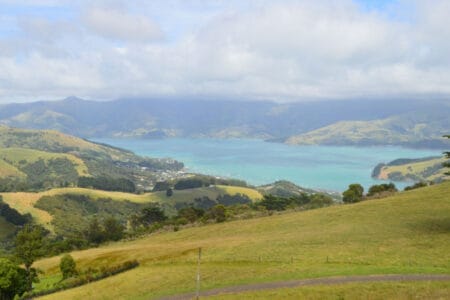 Nach dem wir die schwarzen großen Meeresbewohner vor der Küste Kaikouras bestaunt haben, stand bei uns eine etwas längere Fahrt auf dem Programm. Unser Ziel war nun die wieder südlichere gelegene Banks Peninsula, eine wunderschöne Halbinsel „hinter“ Christchurch. Bei der tollen Landschaft unseres neuen Reiselandes und in unserem gemütlichen neuen Apollo Begleiter hat uns die fast vierstündige Fahrt allerdings wirklich nichts ausgemacht.