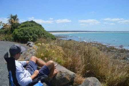 zwar blieben die Temperaturen auch in Küstennähe eher unter unserer persönlichen Wohlfühlgrenze von mindestens 20 Grad, dennoch hatten wir bei einem frischen Sonne-Wolken-Mix eine schöne Tour entlang der Ostküste Neuseelands. Entspannt fuhren wir mit unserem Apollo Begleiter immer wieder einzelne kleinere Stopps an. Dabei zeigte sich die Schönheit und Vielfalt der Küste stetig aufs Neue.