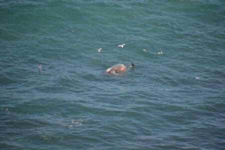 Gut gestärkt fuhren wir anschließend weiter und erreichten nach ca. 15-minütiger Fahrt den Parkplatz des Nugget Points. Der Nugget Point ist wohl einer der faszinierendsten Küstenabschnitte der Ostküste Neuseelands. Hier findet man eine steile Landzunge mitsamt Leuchtturm und vielen vorgelagerten kleineren Felsformationen (den Nuggets). Nach einem kurzen Spaziergang konnten wir diesen Traumausblick genießen. Zudem hatten wir noch das Glück, einer Robbe beim Jagen zuzuschauen. Mehrere Minuten konnte man das Spektakel und den Überlebenskampf der Beute verfolgen. Wir konnten “leider” nicht ganz genau erkennen, was dort um sein Leben bangte. Aber die umliegenden Vögel waren quasi schon mit Messer und Gabel bewaffnet und hofften gierig auf Überbleibsel. Ein faszinierender, wenn auch etwas blutrünstiger Anblick der Natur. Für alle die es lieber auf die sanftere Tour mögen, gab es auch etwas zu sehen. Unterhalb des Leuchtturms konnte man auch kleine Baby-Robben beim Spielen beobachten.