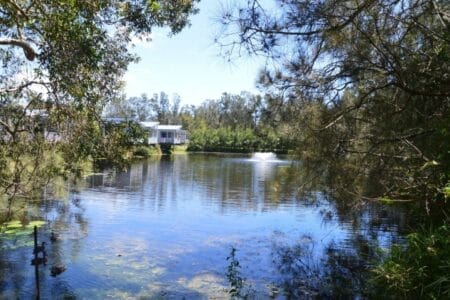 Ansonsten haben wir die Zeit noch ein bisschen auf unserem Campingplatz genießen können. Direkt neben der Rezeption ist ein richtig cooles Café (Folk), wo es nach eigener Aussage den besten Kaffee in Byron gibt. Dies können wir von unserer Seite nur bestätigen. Nach einem ausgiebigen Frühstück mit Blick auf einen der Seen, der direkt hinter unserem Camper hier auf diesem Discovery Park liegt, machen wir uns nun auf ins Hinterland von Byron und ziehen wieder weiter nördlich. Wir hatten hier drei sehr tolle Tage. Wir zwei und unser Apollo Camper haben uns hier sehr wohlgefühlt.