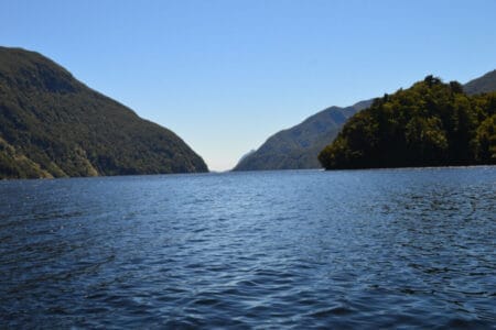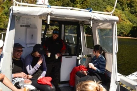 Bei frostigen 8 Grad, aber strahlendem Sonnenschein schellte unser Wecker um 06:30 Uhr. Unser Campingplatz lag nicht in Te Anau, sondern etwas ruhiger im nächsten Ort Manapouri. Daher trafen wir „unser Team“ für den Ausflug direkt am Anleger des Lake Manapouri. Team deshalb, da unsere Guides Mark und Cloudy (der Name war an diesem Tag zum Glück nicht Programm) unserer Gruppe direkt ein tolles Teamgefühl vermittelten und uns dementsprechend auch immer so anredeten. In einer Region, in der zu dieser Zeit Hochsaison des Massentourismus ist, war es super angenehm, nur Teil einer kleinen Gruppe von 9 Personen zu sein. Auch deshalb entschieden wir uns für diesen Ausflug, auf den sowieso nur maximal 10 Personen pro Tag mitgenommen werden. Darüber hinaus ist der Doubtful Sound wesentlich weniger frequentiert als der Milford Sound. Somit wollten wir ein bisschen „Expeditionsfeeling“ bei der Erkundung dieser wunderschönen Landschaft mitbuchen.