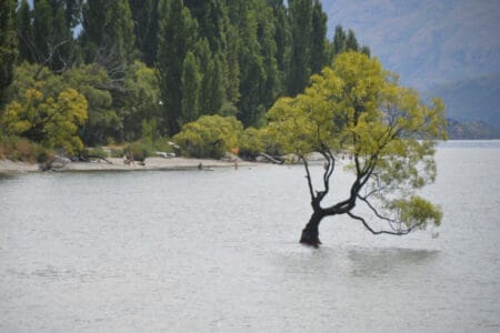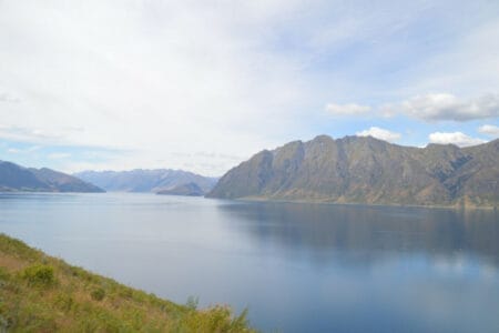 Mit 4,5 Stunden stand uns dabei eine lange Fahrt von Queenstown zu unserem nächsten Ziel, dem Gletscher-Gebiet an der Westküste rund um Fox und Franz Josef bevor. In die Fahrtdauer waren Fotostopps und Mittagspause(n) noch gar nicht eingerechnet! Die Landschaft rund um Queenstown und Wanaka, Hawea und Makarora ist die Fahrt allerdings mehr als wert! Statt dem Haast Highway komplett zu folgen, entschieden wir uns für die kleine Abkürzung über den Crown Range Pass nach Wanaka. Dabei wurden wir mit einer tollen, kurvenreichen Strecke und wunderschönen Ausblicken über die Berge bis hin zum Horizont belohnt. Die beiden (riesigen) Seen Wanaka und Hawea leisteten ihren übrigen Beitrag zu dieser wundervollen Landschaft. Überraschenderweise kletterte das Thermometer an diesem Tag auch bis fast an die 30 Grad (die Zahl scheint in den letzten Tagen irgendwie in Mode zu sein…). So entschlossen wir uns, ungeplante Sonnenbäder am Seestrand in unseren Tagesplan mit aufzunehmen.