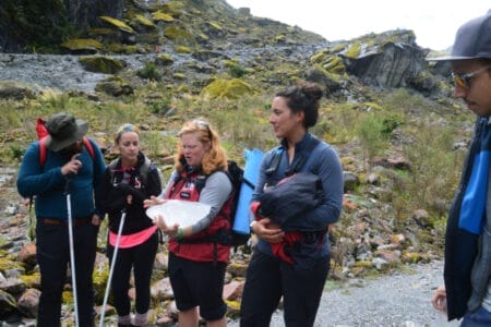 Mit solchen und weiteren Infos versorgten uns unsere tollen Guides Sophie, Hannah und Cathy auf unserem Weg zum Gletscher. Fox Guiding hat uns vor der Tour zudem bestens mit Wanderschuhen, Regenjacken und jedem anderen erdenklichen Wanderequipment ausgestattet. So konnten wir den steilen und holprigen Aufstieg bestens meistern.
