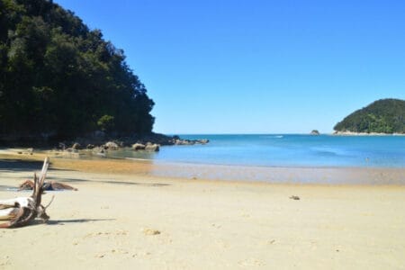 Um solch eine individuelle Tageswanderung zu unternehmen, ist man allerdings auf etwas Hilfe angewiesen. Den Nationalpark kann man mit dem Auto nämlich nur von zwei Seiten erreichen: entweder im Süden über die Örtchen Kaiteriteri oder Marahau oder über einen großen Umweg im Norden, der eine weitere fast zweistündige Fahrt bedeutet hätte. Wir entschieden uns für die komfortablere Variante und starteten unseren Ausflug von Kaiterieri aus. Unseren Apollo Camper konnten wir hier ganz praktisch den ganzen Tag kostenlos parken.