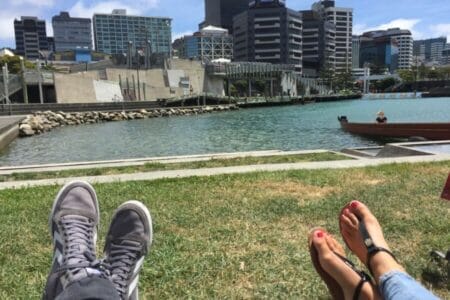 Ganz gemütlich erkundeten wir alles zu Fuß und checkten noch ein paar Bars aus. Immerhin soll die Stadt mehr Bars pro Kopf haben als New York, und das Angebot war wirklich riesig. Ein gemütliches Bier bzw. Wein an der Lagoon ließ uns dabei etwas die Zeit vergessen. Zu guter Letzt schlenderten wir noch über die all-samstäglichen Nightmarkets auf der Cuba Street, die aber ausschließlich aus (nicht sehr einladenden) Essensständen bestanden. Dafür sollte der Hunger also nicht unbedingt aufgespart werden.