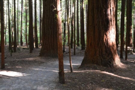 Im ca. 30 Minuten entfernten Rotorua gibt es neben dem gleichnamigen See noch den wunderschönen Redwood Forest zu entdecken. Die riesigen roten Sequoia Bäume, die man eigentlich aus Kalifornien kennt, ebnen hier den Weg zur Aussicht auf den Pohutu Geysir. Diesen Geheimtipp fanden wir in unserem Boomerang Reisen Tourenmanual.