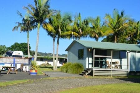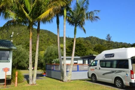 Anschließend ging es nämlich wieder über den bereits bekannten Highway 1 Richtung Süden mit Tagesziel Whangarei. Dort schlugen wir im sehr schönen, sauberen und gepflegten Top 10 Whangarei Holiday Park unser letztes Nachtlager in unserem treuen zu Hause auf vier Rädern auf. Das ca. 2 Stunden nördlich von Auckland gelegene Städtchen bot sich für uns als idealer Übernachtungsstopp an. Bereits die Fahrt dorthin dauerte schon gute 3 Stunden. Wir mögen unseren Apollo zwar wirklich, aber 3 Stunden sitzen reichen dann auch völlig aus. Gegen Nachmittag trudelten wir also auf dem familiengeführten Campingplatz ein und wurden sehr freundlich von Nick begrüßt. Er gab uns viele hilfreiche Infos zur Umgebung. Vom Platz starten praktischerweise mehrere schöne Rundwanderwege zu Höhlen inklusive Glühwürmchen. Auch die Whangarei Falls, die wir auf dem Hinweg bereits besucht hatten, kann man von da aus problemlos über eine schönen Wanderweg zu Fuß erreichen. Auch wenn wir wirklich gerne noch ein paar der vielen Tipps und Wege ausprobiert hätten, stand uns ein großer Camper-Putzen-Wasch-Nachmittag bevor (Marvins Lieblingsprogramm). Wenn man so viel unterwegs ist, kommen solche Sachen nämlich ein bisschen zu kurz. Außerdem galt es, das Schmuckstück am nächsten Tag auch in altem Glanz zurückzugeben. So nutzten wir also die gut ausgestattete Waschküche des Campingplatzes, um auch unseren Klamotten noch mal neuen Glanz zu verleihen, schrubbten den Apollo sauber und genossen anschließend noch einen freien entspannten Abend in unseren liebgewonnenen Campingstühlen.