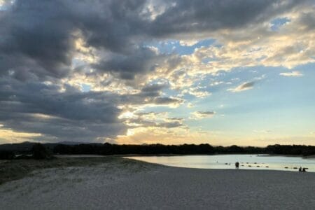 Neben tollen „normalen“ Stränden hat die Region aber auch noch etwas außergewöhnlichere Strände zu bieten, die sich an einzelnen Creeks befinden. Gerade der Currumbin Creek und der Tallebudgera Creek haben uns sehr gut gefallen. Das tolle bei diesen Creeks ist, dass das Wasser vom Meer in ein innenliegendes Gewässer mündet (oder umgekehrt?). Somit entstehen seichte Stellen mit glasklarem Wasser, in denen man super plantschen kann. Das Wasser ist viel ruhiger und meist auch wärmer, dazu kann man kann meist windgeschützter liegen als am doch etwas windigeren Hauptstrand. Zudem kann man bei den Creeks den Sonnenuntergang sehr gut beobachten. Da wir mit unserem Apollo Camper alles immer direkt dabei haben (was insbesondere für kurze und spontane Stopps wirklich ideal ist) haben wir es uns nicht nehmen lassen, unser Abendessen mit samt Sonnenuntergang zu genießen 🙂