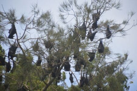 Nach diesem kleinen Zwischenstopp ging unsere Reise dann weiter nach Hervey Bay. Dort wurden wir von hunderten Fledermäusen begrüßt, die in den Bäumen direkt am Strand hingen – ein irrer Anblick!