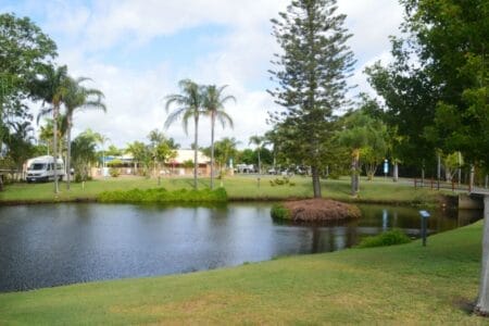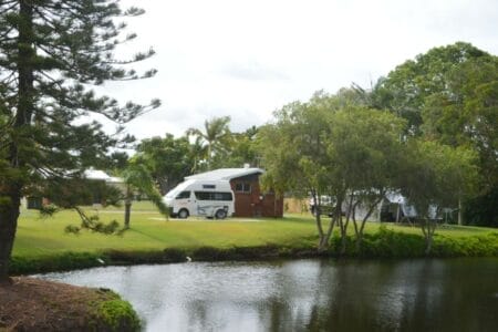 Hier sind wir nun auf einem wirklich sehr schönen Discovery Park Campingplatz in der Fraser Street gelandet. Direkt an einem kleinen See mit Fischen und Schildkröten gelegen, haben wir sogar unser eigenes privates Badezimmer direkt an unserem Stellplatz. Schade, dass wir auf dem Platz selbst nicht so viel Zeit verbringen werden. Wie der Straßenname verrät, starten von Hervey Bay die meisten Touren nach Fraser Island. Ebenso unsere zweitägige Cool Dingo Tour morgen, auf die wir uns schon sehr freuen. Heute haben wir die Zeit aber trotzdem gut genutzt um auch mal so alltägliche Dinge wie Wäsche waschen zu erledigen. Muss ja schließlich auch mal sein ?. Zudem haben wir den weiteren Verlauf unserer Reise noch etwas geplant und den campingplatzeigenen Tennisplatz unter die Lupe genommen ?. Zusammen mit dem gemütlichen Kaffee am Morgen hat der Besuch des Marktes am Mittag sowie der Waschtag am Nachmittag also unseren gemütlichen Rentnertag perfekt abgerundet 😛