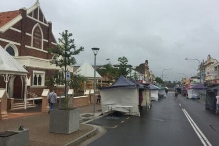 Mit zumindest vollem Tank machten wir uns dann wie geplant auf den Weg nach Hervey Bay. Auf dem Weg dorthin legten wir noch einen kurzen Abstecher in Maryborough ein. Das erwartet kleine, letztendlich dann aber doch recht große Örtchen ? Maryborough liegt direkt am schönen Mary River. Es bietet rund um das Heritage Village Center viele stilvolle und gut erhaltene Gebäude im viktorianischen Stil aus dem 19. Jahrhundert. Dazu hatten wir Glück, dass wir den Heritage Markt (im Trockenen) besuchen konnten. Fündig wurden wir hier auch bei unserer Suche nach einem Bankautomaten und einem Supermarkt.