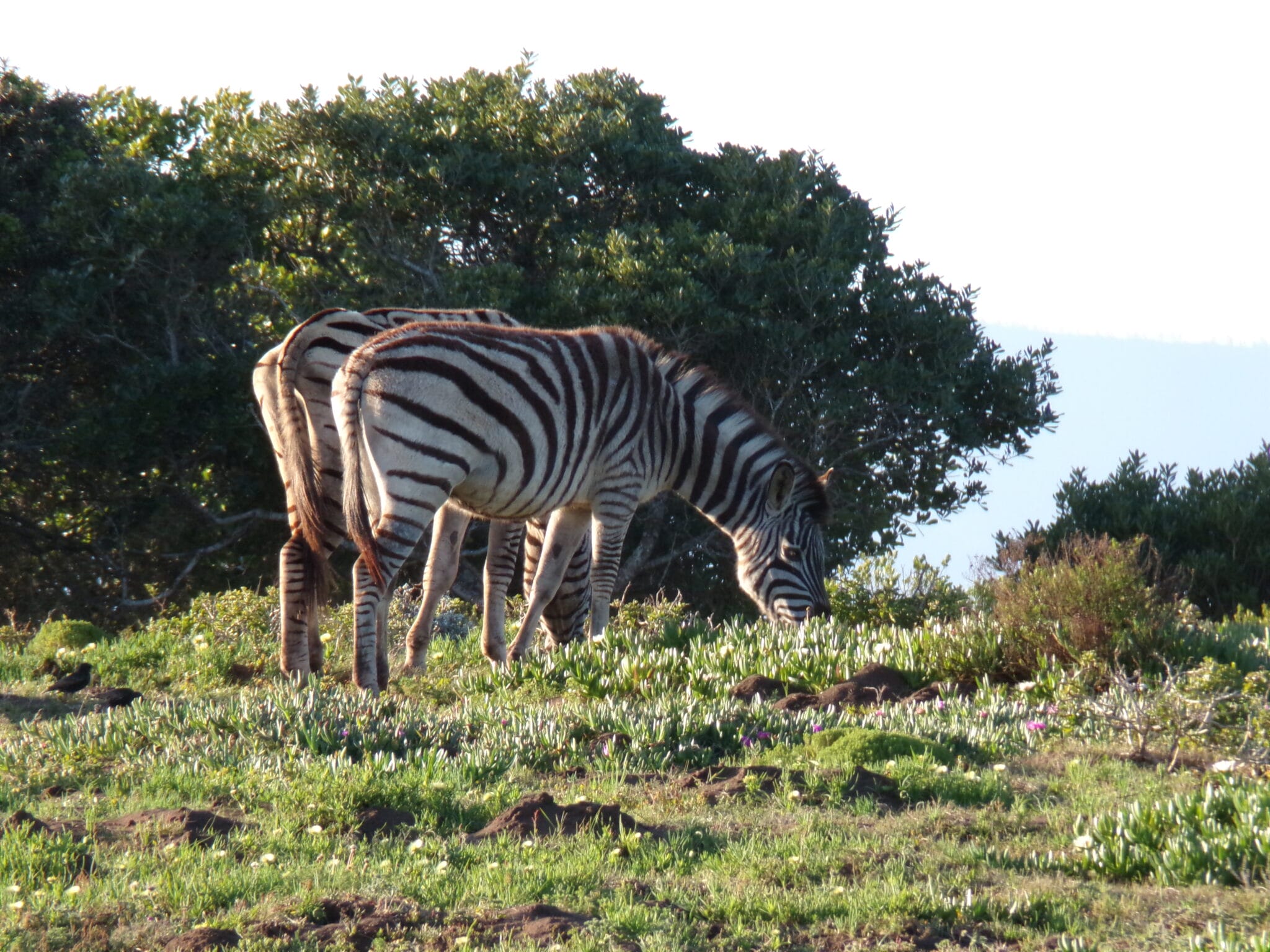 Zurück an der Küste bezog ich Quartier in der Simbavati Fynbos Lodge in Sedgefield. Die Lodge liegt auf einem Bergrücken mit Blick auf Meer und Lagune – und als besonderes Highlight konnte ich Zebras direkt vom Zimmer aus beobachten. Naturkino deluxe! Da war ich doch samstags auch noch auf den Wochenmarkt Shoppen. Das macht hungrig, also hab ich auch noch an dem leckeren Angebot satt gegessen.