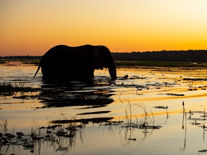 • Flussfahrt bei Sonnenuntergang im Chobe-Nationalpark