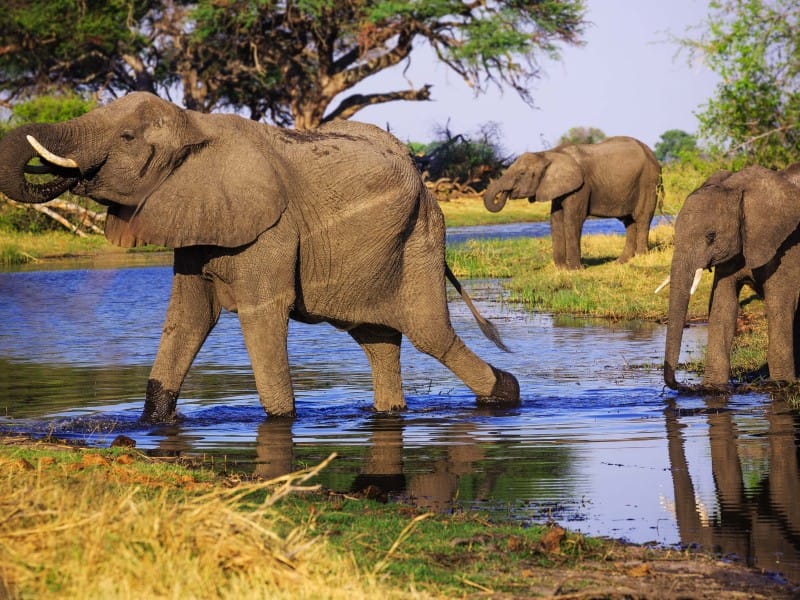 Heute reisen Sie nach Botswana und erreichen die Stadt Kasane, wo Ihre Unterkunft direkt am Ufer des Chobe-Flusses liegt. Der Fluss bildet die nördliche Grenze des Chobe Nationalparks und zieht mit seinem ruhigen Verlauf einige der grössten Elefantenherden Afrikas an.