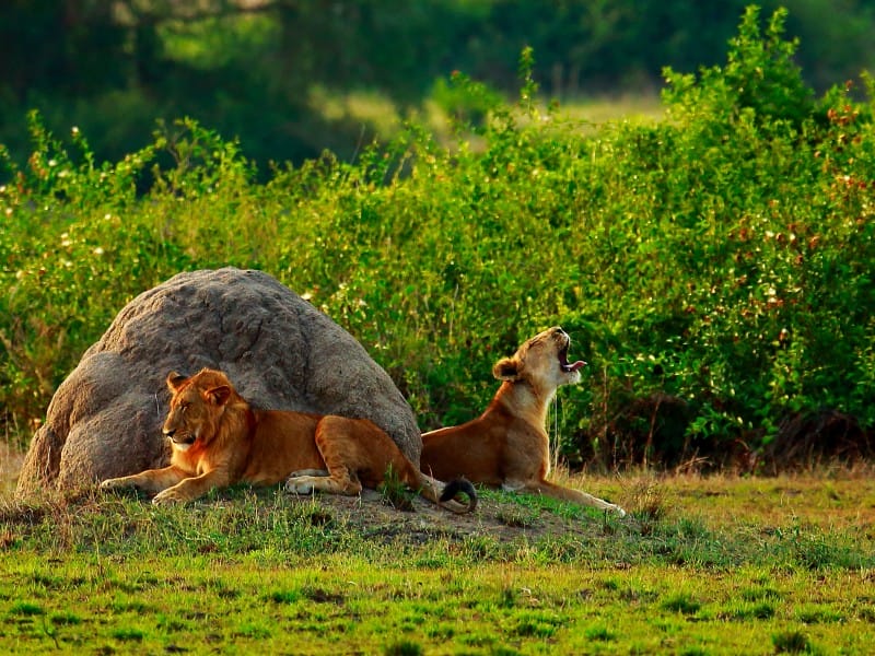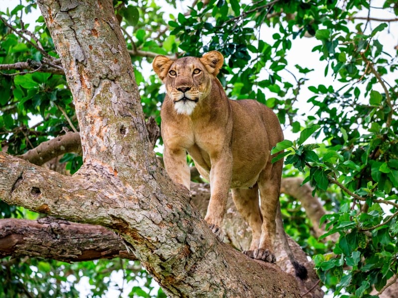 Ein weiterer Höhepunkt erwartet Sie heute: Ishasha, gelegen im südlichen Teil des Queen Elizabeth-Nationalparks. Dieses Gebiet ist berühmt für seine baumkletternden Löwen, die einzigartig in Afrika sind. Die Löwen klettern hier auf die Bäume, um zu entspannen und der Sonne zur wärmsten Zeit des Tages zu entfliehen. Sie haben gute Chancen, die Löwen oben in den Kronen der majestätischen Feigenbäume zu entdecken.