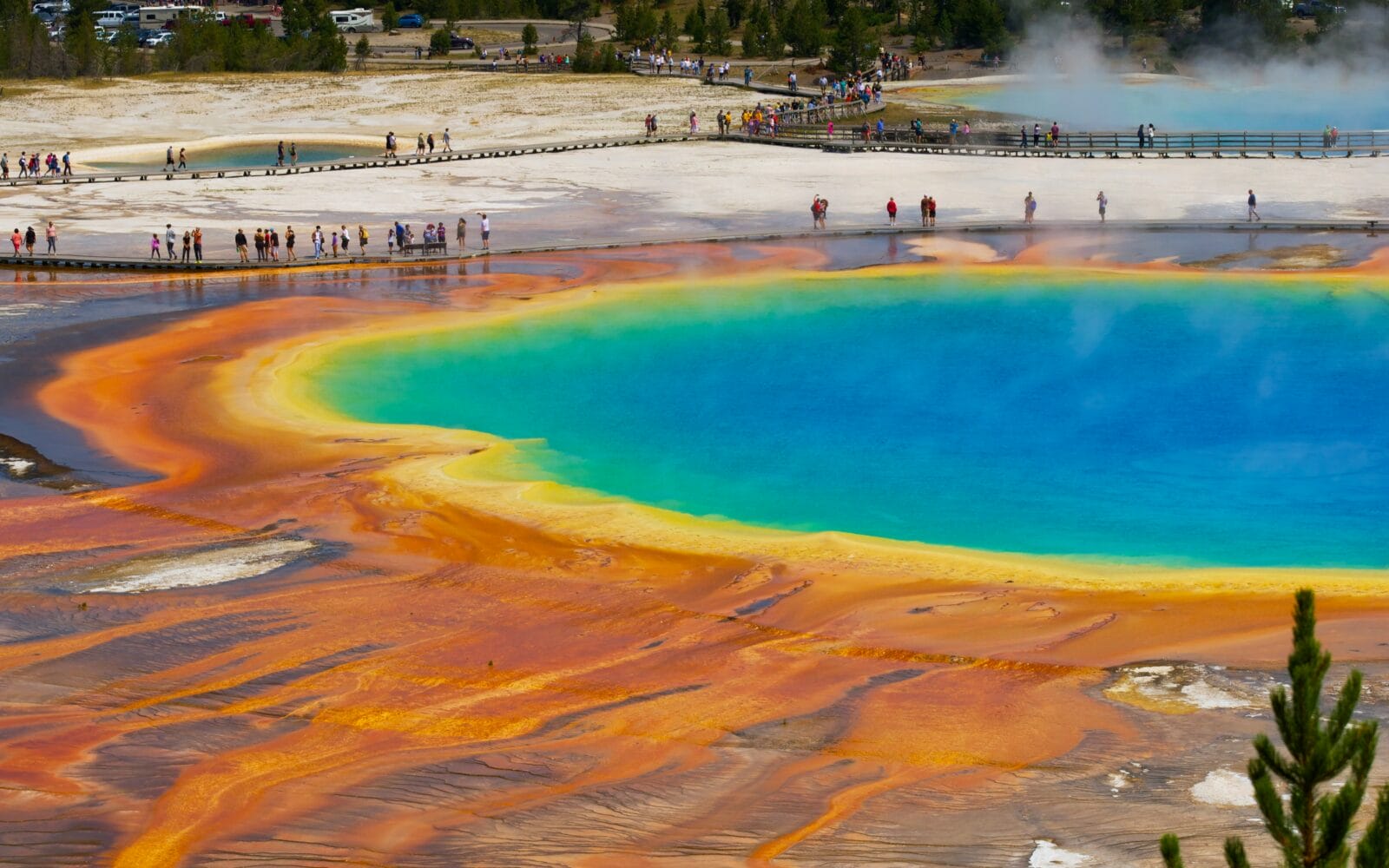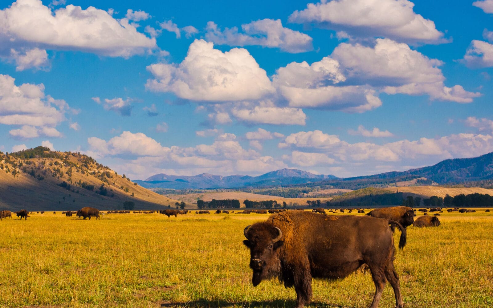 Yellowstone beeindruckt mit Geysiren, heißen Quellen, wilden Tieren und einer einzigartigen Vulkanlandschaft. Der Park erstreckt sich über Teile von Wyoming, Montana und Idaho und ist berühmt für Naturwunder wie den Geysir „Old Faithful“ und die farbenprächtige Grand Prismatic Spring. Hier leben Bisons, Wölfe, Elche und Bären in freier Wildbahn. Die Landschaft ist geprägt von geothermaler Aktivität, tiefen Schluchten und weiten Ebenen. Besucher können wandern, campen oder einfach die Natur bestaunen.